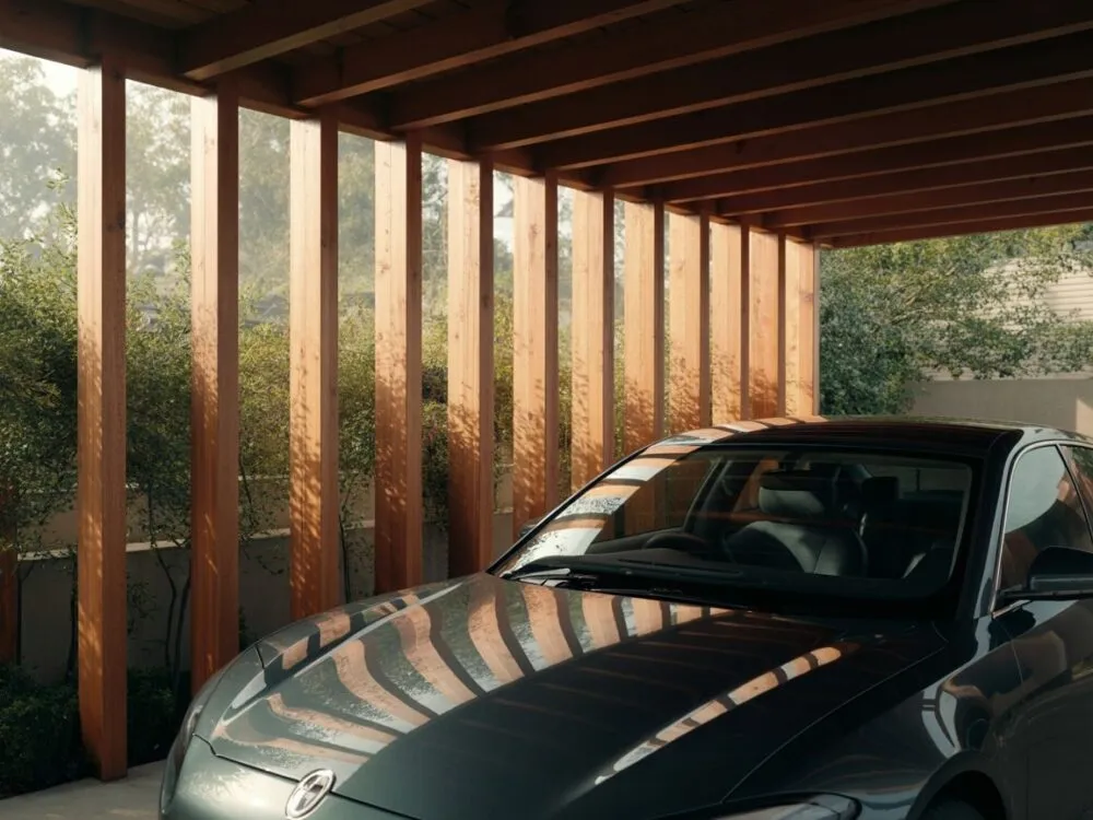 | Ściany z trzech stron | Wiata z pełnymi ścianami i dachem, używana jako garaż |
